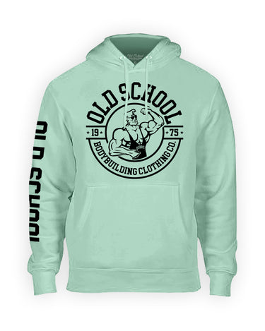 The "1975 Circle" Hood is the perfect piece to get your sweat on. This easy-to-wear hoodie is branded with the Old School "1975 Circle" logo in black on Seafoam. Wear this to the gym to layer up for an Old School, intense workout or wear it to the grocery store to reload your chicken and rice.