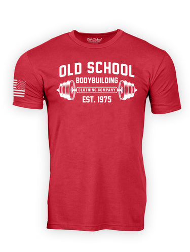 Our super soft and comfortable 60/40 Cherry Red Heather Tee with our "Barbell" logo in bright white. Our Old School Collection of tees have a slight taper from the chest to the waist with firm sleeves for an athletic fit. We finish it off with Old Glory on the right sleeve.