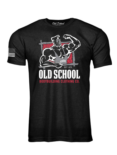 Our super soft and comfortable 60/40 Black Heather Tee with our deep red, bright white and grey "Red Frame" logo. Our Old School Collection of tees have a slight taper from the chest to the waist with firm sleeves for an athletic fit. We finish it off with Old Glory on the right sleeve. No back logo.